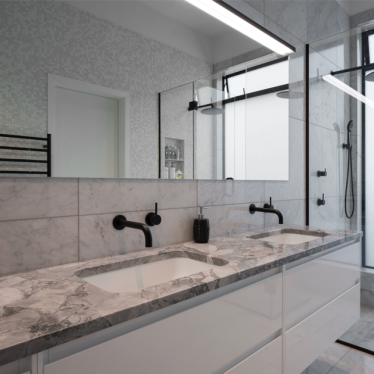 The brief was to replace a recent small addition to the rear of the house with an expansive, open-plan extension that accommodates entertaining. The new addition incorporates living spaces, kitchen, scullery, dining, and outdoor living. The layout of the existing home was also partly reconfigured to incorporate a new master bedroom complete with ensuite and elegant walk-in wardrobe, a new bathroom, a sitting room, and a ‘secret’ media room.