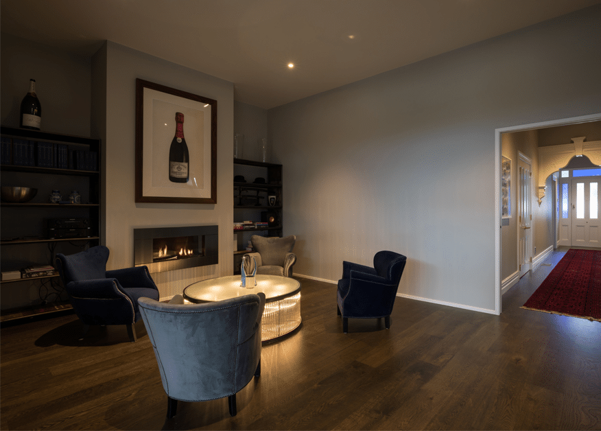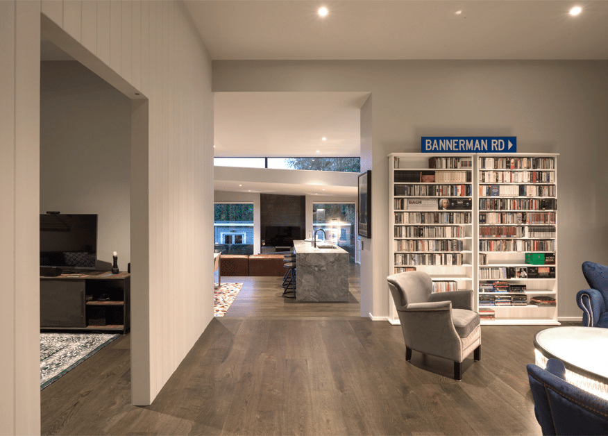 The brief was to replace a recent small addition to the rear of the house with an expansive, open-plan extension that accommodates entertaining. The new addition incorporates living spaces, kitchen, scullery, dining, and outdoor living. The layout of the existing home was also partly reconfigured to incorporate a new master bedroom complete with ensuite and elegant walk-in wardrobe, a new bathroom, a sitting room, and a ‘secret’ media room.
