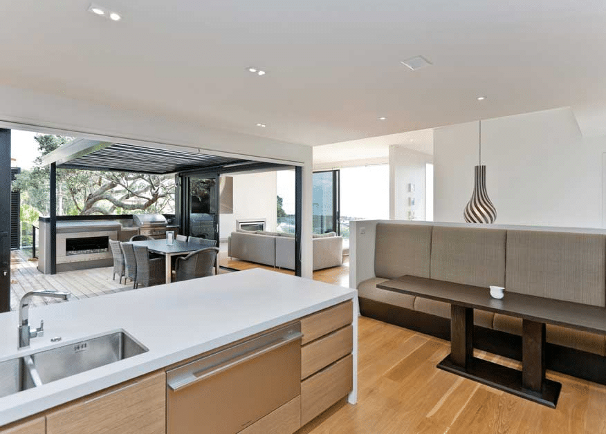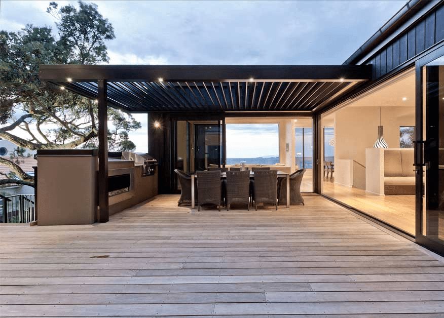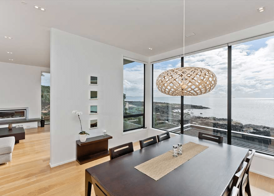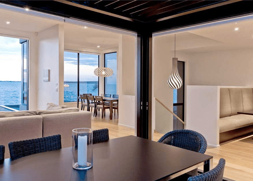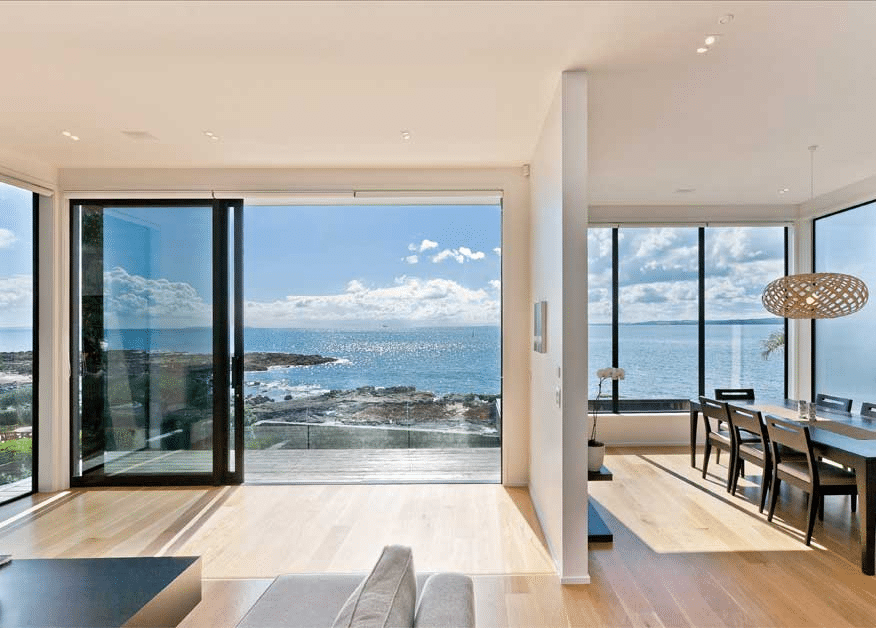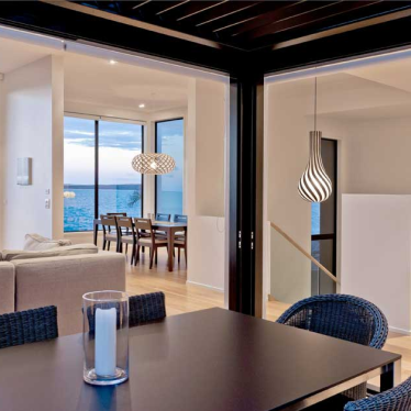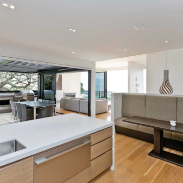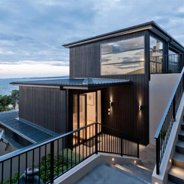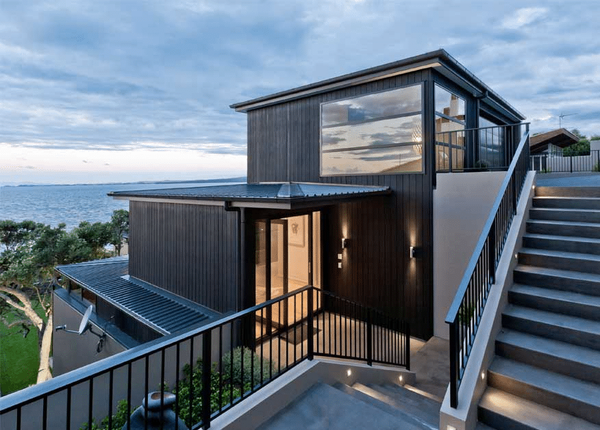 The brief was to design a home which could be integrated into a waterfront property which has a 15m fall from the road front to the rear. The brief also required to optimise the sea views and retain the existing Pohutukawa as per the Resource Consent conditions.