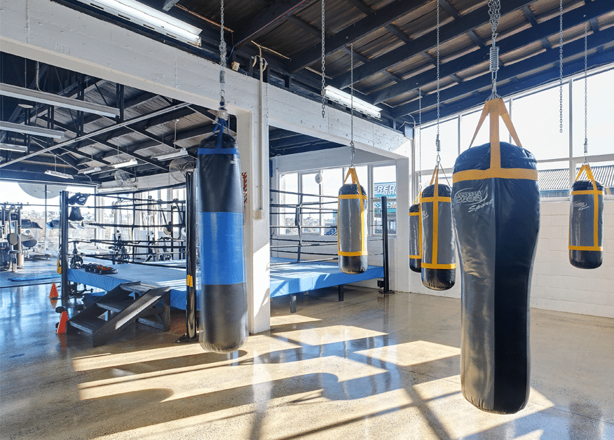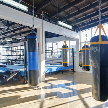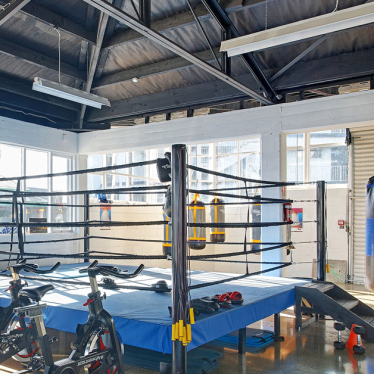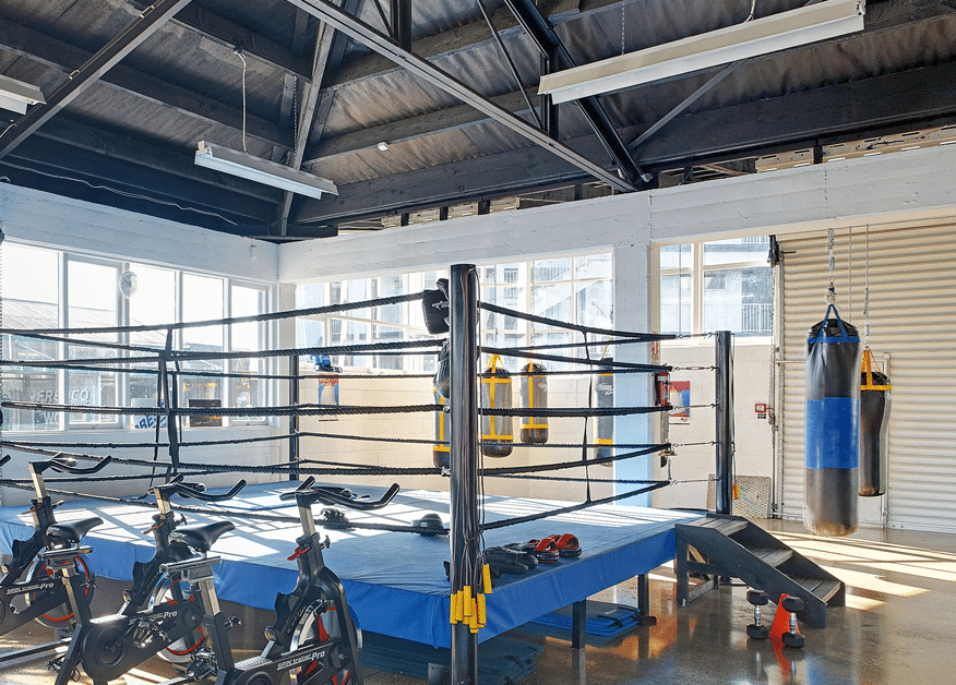 Our client’s brief was to transform an ordinary warehouse building into a prominent boxing gym, complete with café, reception, consulting rooms, office space, storage, changing rooms, sauna, and training rooms.
