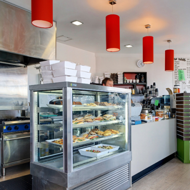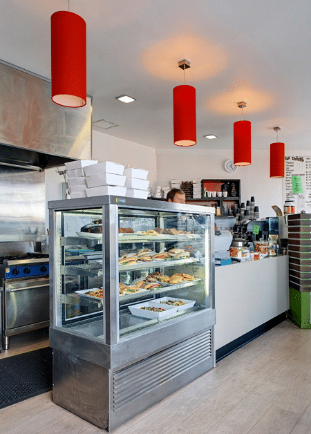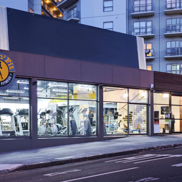 Cedar battens on the exterior define the entry points to the gym and café plus highlight gym and café signage. This timber battened theme is continued internally in the café to provide warmth and contrast with vibrant green and orange colours. The large shopfront windows were retained with the addition of distinctive transfer patterns.