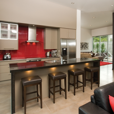 Inside the home an airy feel is sensed, as if you can step of the deck into the Lake. This has been achieved with a floating deck and retaining walls being set back from the deck avoiding the requirement of handrails..