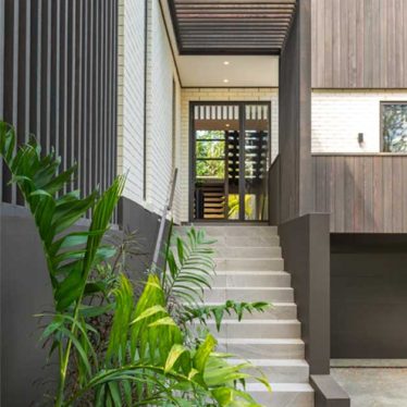 This home is designed in an ‘L’ shaped floor plan, providing maximum outlook and outdoor living space to the surrounding bush, and giving the first floor interior the sensation of being inside the tree canopy itself. Privacy between this home and its neighbour to the street side is achieved through the placement of the main living spaces in relation to the densest area of riparian flora to the edges of the central stream. The property boundary seems to vanish into the bush.