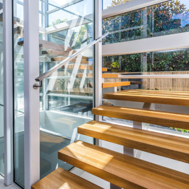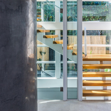 This involved low maintenance cladding materials and multiple entertaining spaces on the upper and ground floor, enabling the flexibility of dual inhabitation of upper and lower floors. Access to the upper floor includes a lift incorporated into the central light well with timber stairs wrapping around. The upper floor includes an accessible plunge pool alongside a large deck entertaining space. With separate access, the upper floor remains secure and private while the owners are away, allowing extended family to continue residing on the lower floors.