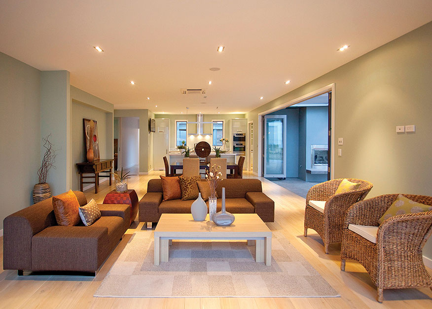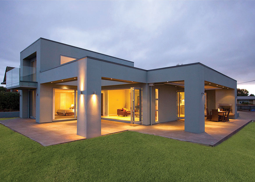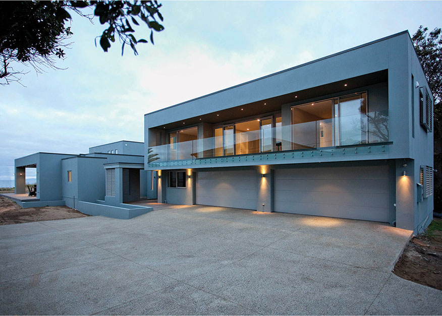 The layout was to be open plan and suitable for entertaining both indoors and out, making full use of natural light and emphasising the views of the Hibiscus Coast. Strong, clean lines form an exoskeleton, drawing the viewer into the warm heart of the building. A double height atrium separates the self-contained guest wing from the main living areas.