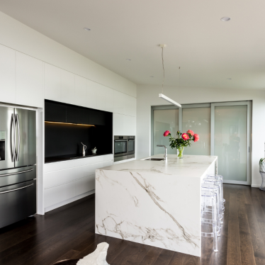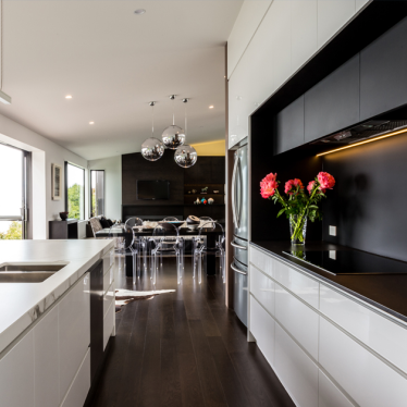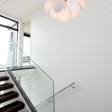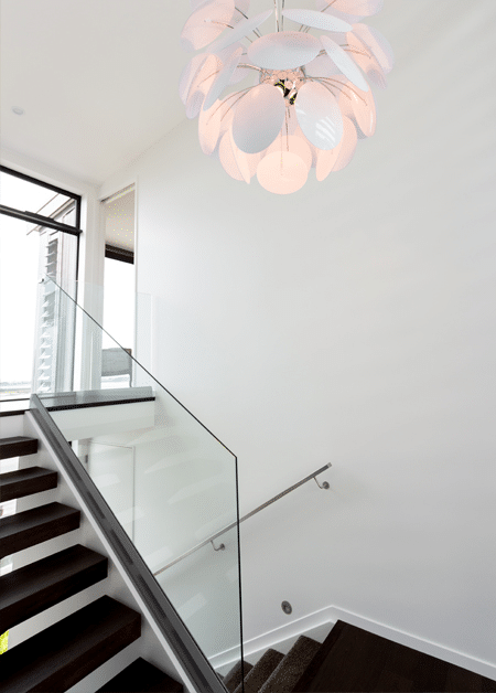 Living spaces are purposefully directed to the view south with a series of decks, layered as platforms down the site. Creative Arch worked with the existing footprint of the house to ensure the re-use of existing structural elements as much as possible. A glazed stairway area separates the new addition from the refurbished and re-clad existing house.