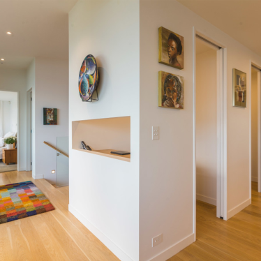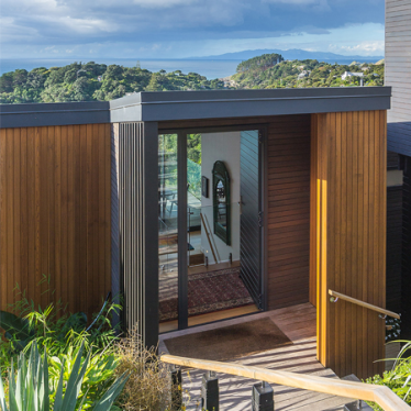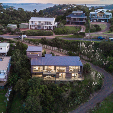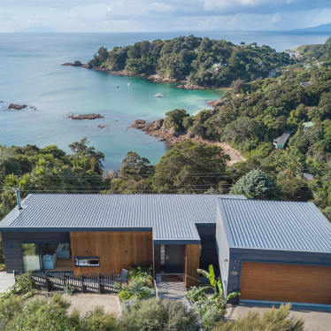 Located near Oneroa Beach, Waiheke Island, this home is positioned on a very steep site, facing north with views towards Hekerua Bay and beyond, with access from the southern located driveway. This new build was designed to fulfil the clients’ specific requirements and to maximise the coastal views using a limited budget.