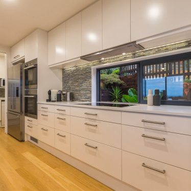 The brief was to create a stylish contemporary home incorporating the living areas and master bedroom on one level with two other separate bedrooms and bathroom on the lower level that could be used as guest accommodation or family rooms. Multiple flexible outdoor spaces were required.