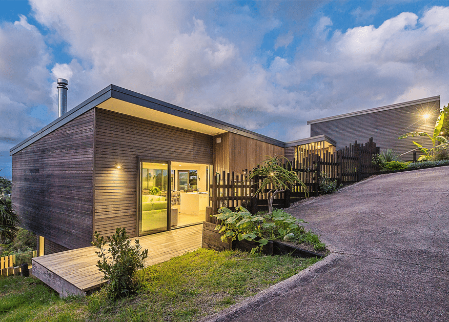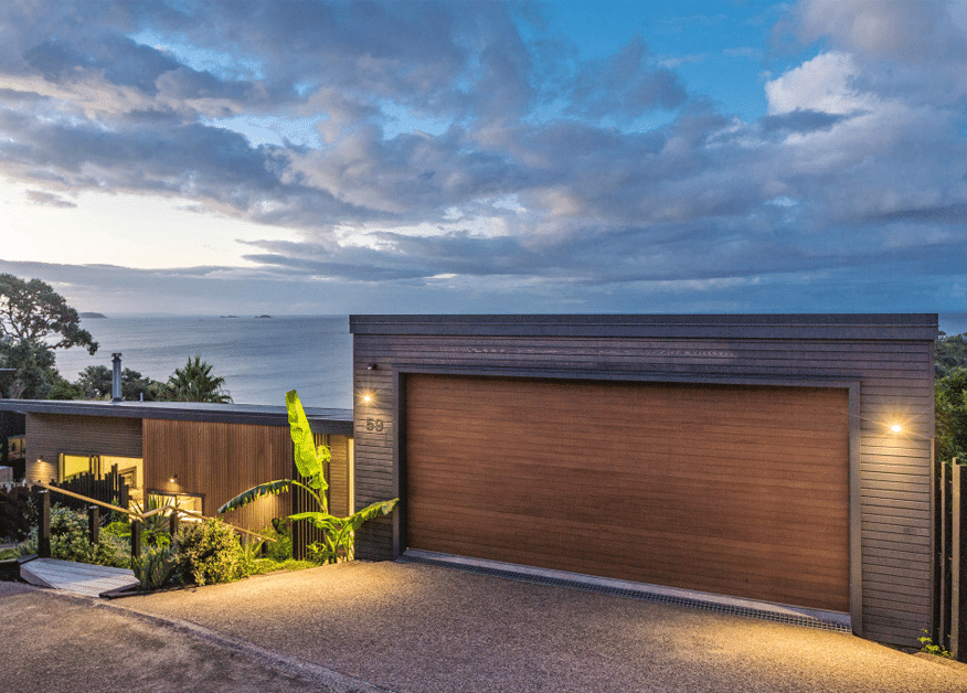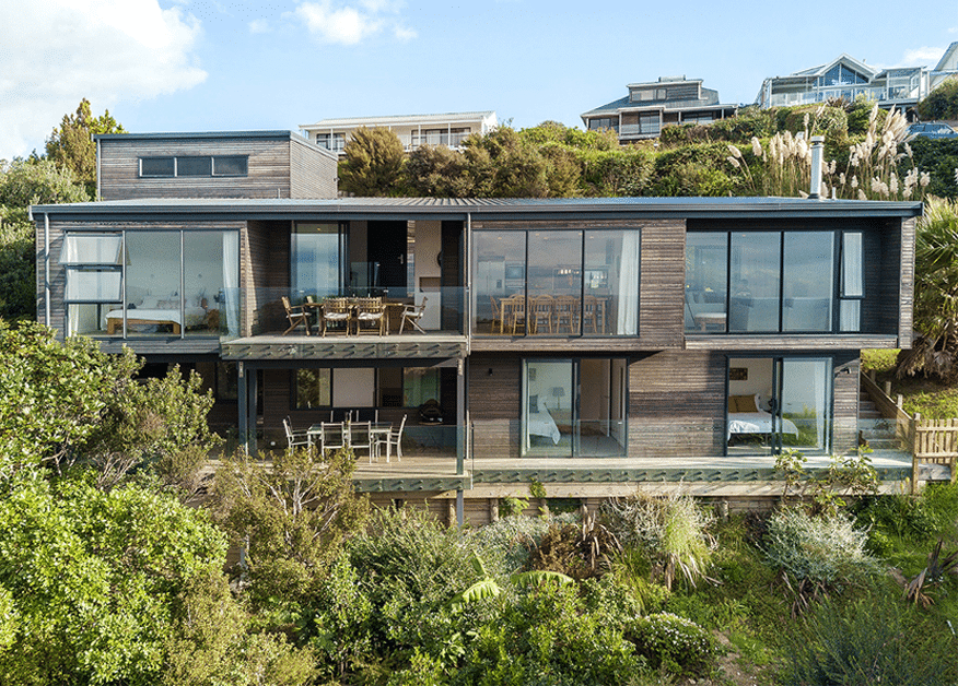 Located near Oneroa Beach, Waiheke Island, this home is positioned on a very steep site, facing north with views towards Hekerua Bay and beyond, with access from the southern located driveway. This new build was designed to fulfil the clients’ specific requirements and to maximise the coastal views using a limited budget.