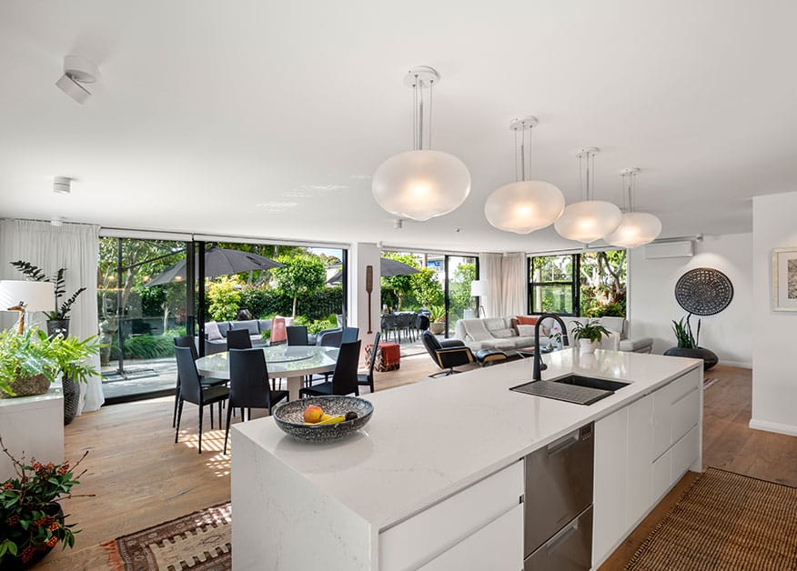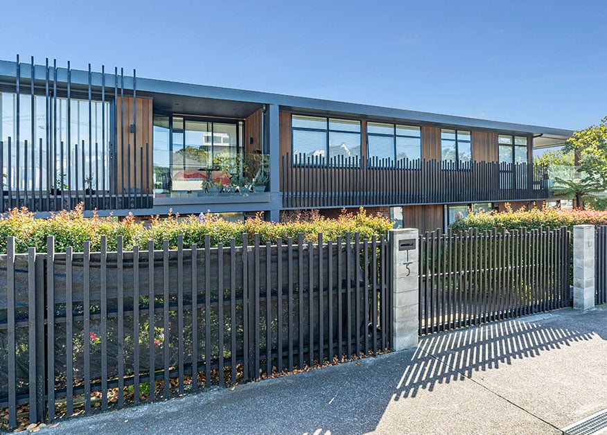 Looking to the future, existing concrete intertenancy walls were extended to create new wing walls on sturdy footings. The wing walls will support an additional level in the future – two more apartments created with steel framing, extending across the top of the building and maximising the incredible views towards Rangitoto.