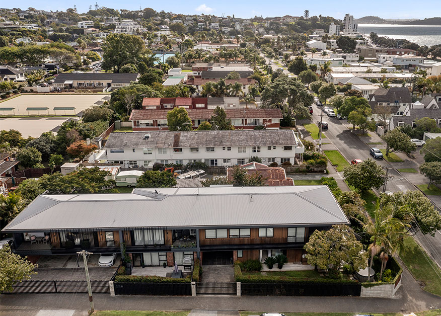 This apartment building has been nestled a stone’s throw from Kohimarama beach since the mid-1960s. Its solid, reliable form had barely changed in 60 years, and it was slipping into quiet oblivion as the flashy suburbs grew up around it.