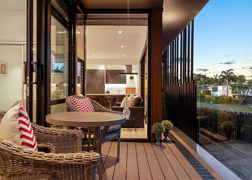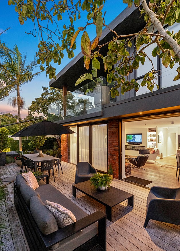 The project began by honouring the building’s old bones, a solid base of red brick. The brick was retained, and tired fibre cement cladding was replaced with the crisp lines of black NuWall contrasting with the softness and warmth of cedar. Timber joinery was replaced with full height, reconfigured, aluminium and glass, to ensure a watertight envelope. Battens reach up from the deck spaces, adding interesting shapes, acting as privacy screens, and mimicking the lines of the gate, creating one cohesive façade from the street.