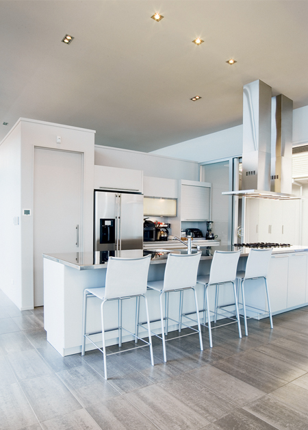 The main living area and master bedroom were required to be separate from the potential guest wing which could be rented separately. This was achieved by forming two levels which also completed the steep gradient of the site. The other requirement was for the home to have a commercial flavour, something the Kwan’s were eager to emphasise.