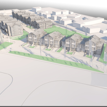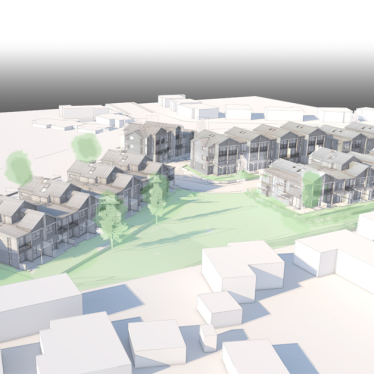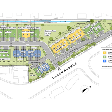 The urban form for the Olsen Avenue development blends the traditional architectural features from the surrounding neighbourhood to ensure a strong connection to the established neighbourhood context.