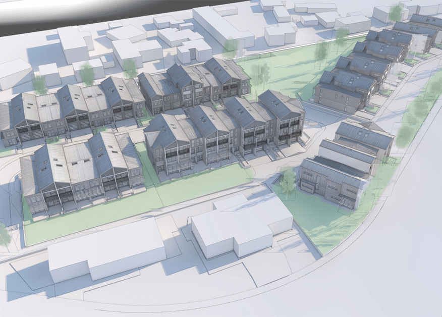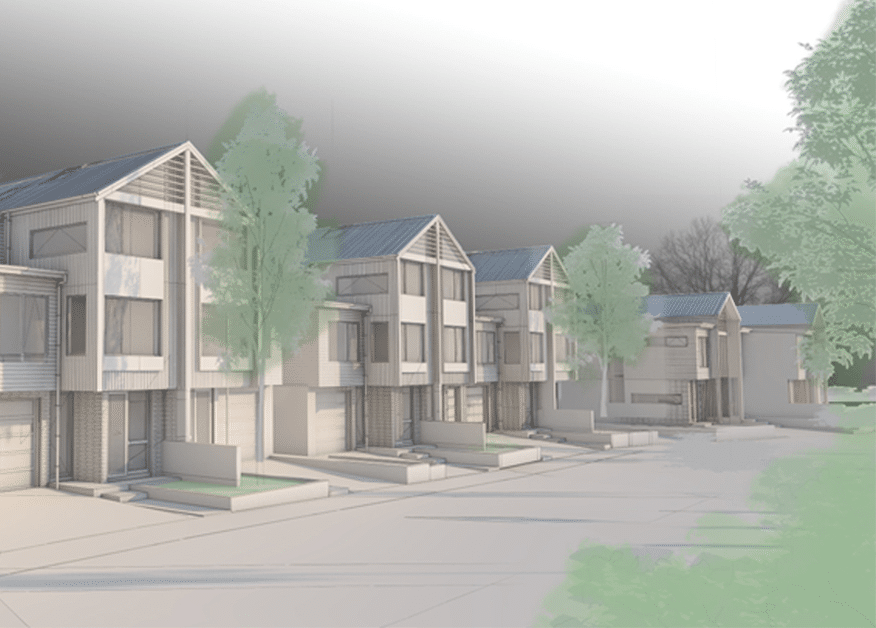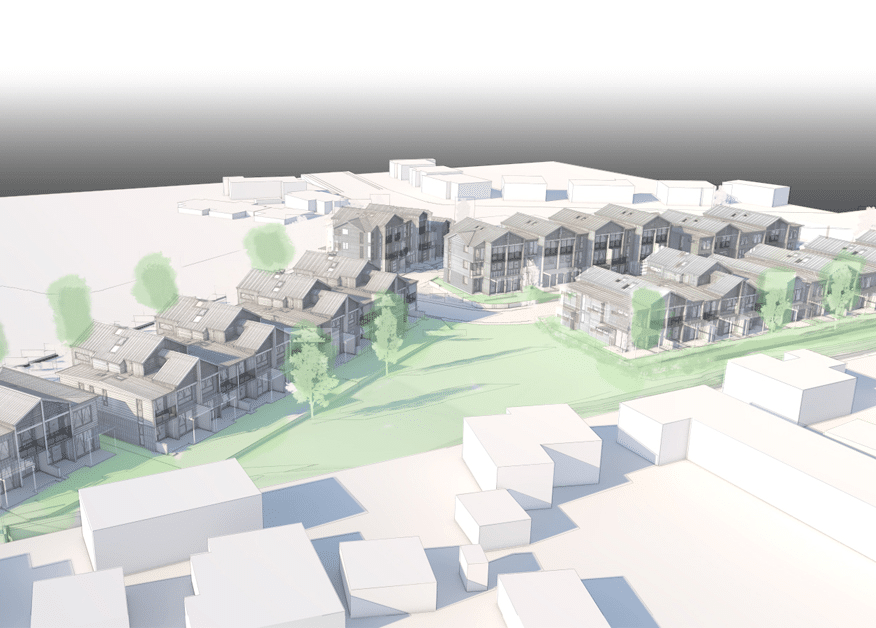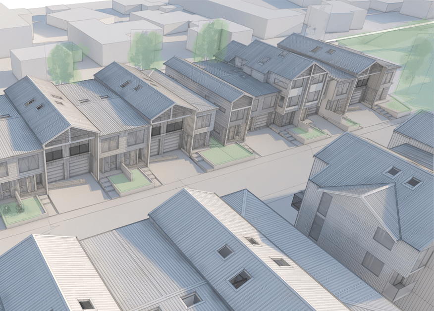 The urban form for the Olsen Avenue development blends the traditional architectural features from the surrounding neighbourhood to ensure a strong connection to the established neighbourhood context.