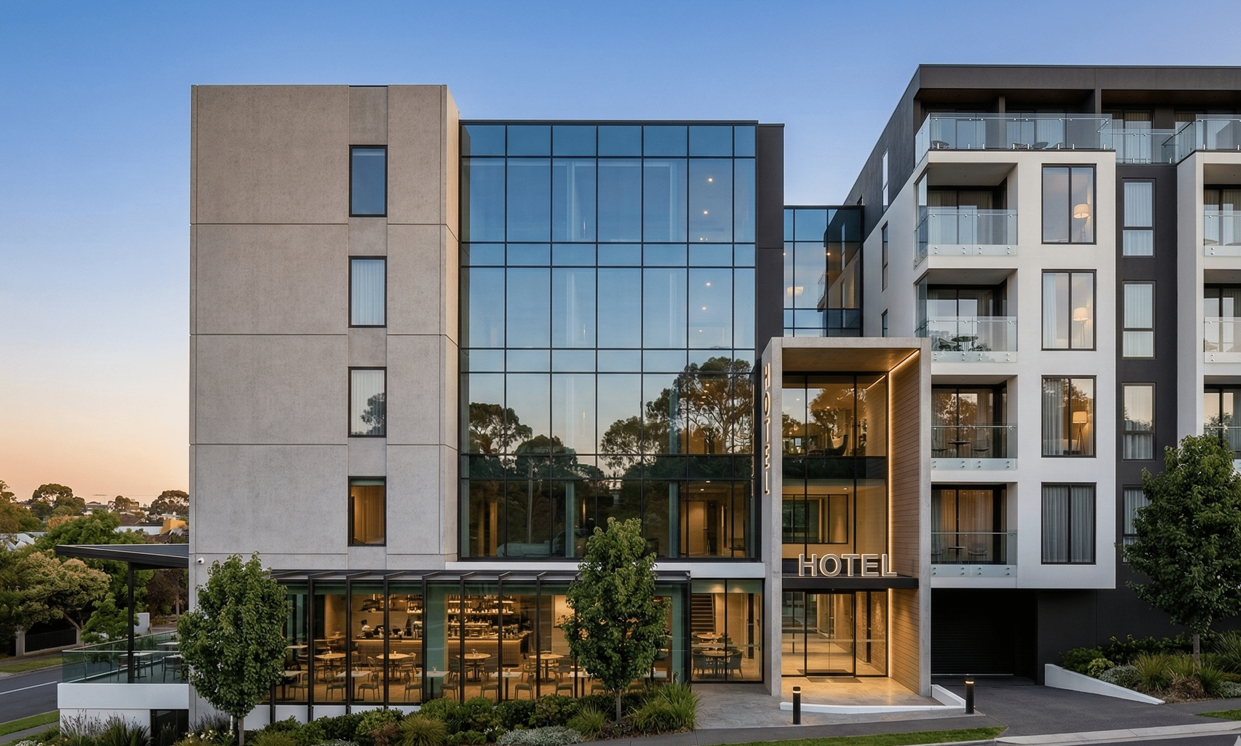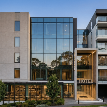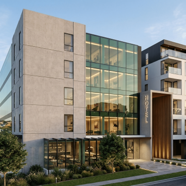 This proposal combines a hotel, residential apartments, retail, and hospitality spaces in sleek, contemporary forms, strengthening the urban scale of development that is emerging across the surrounding neighbourhood.