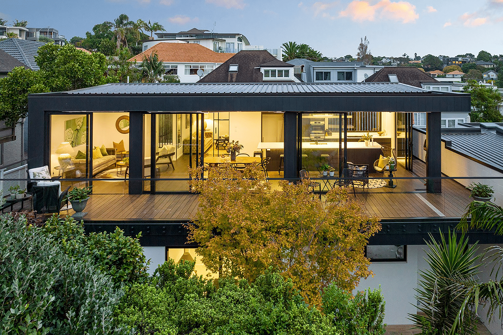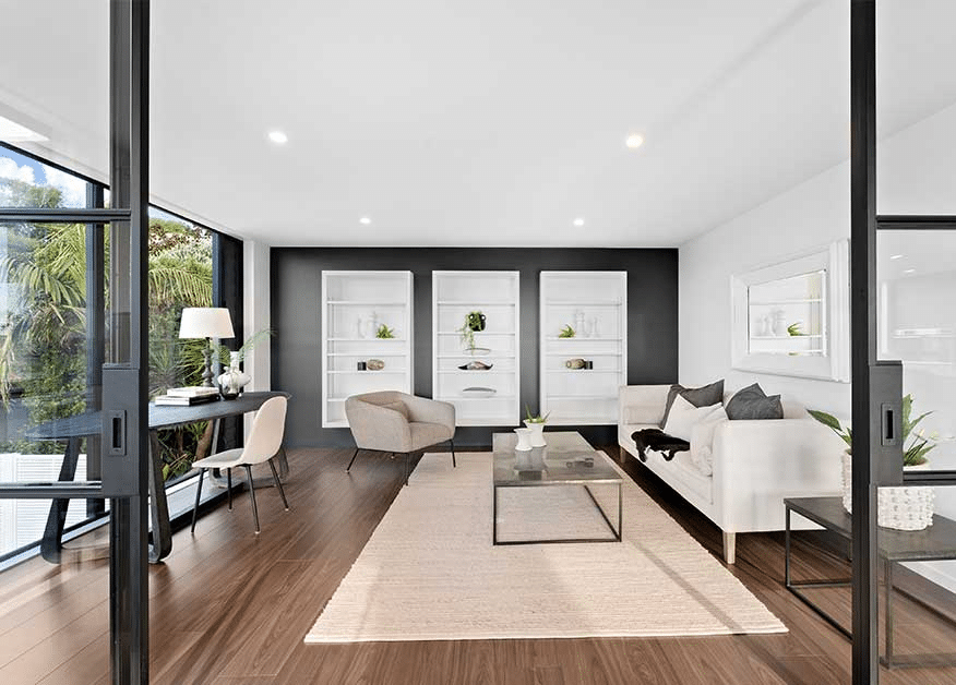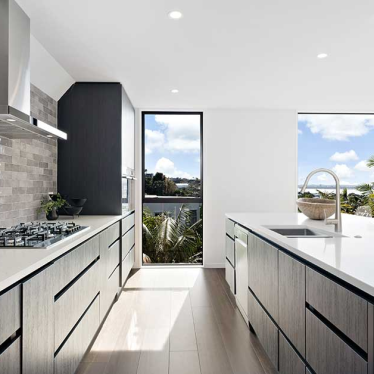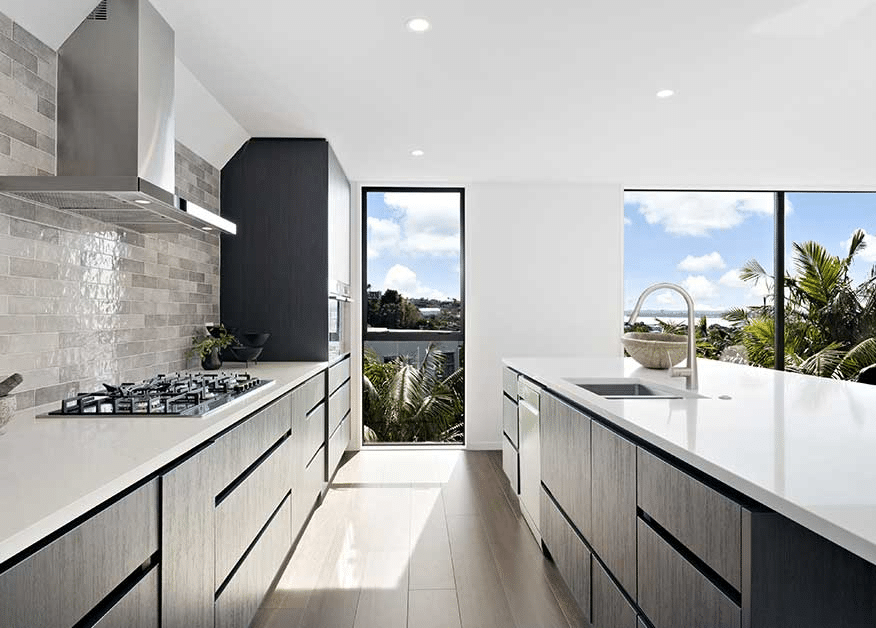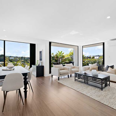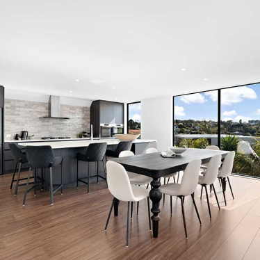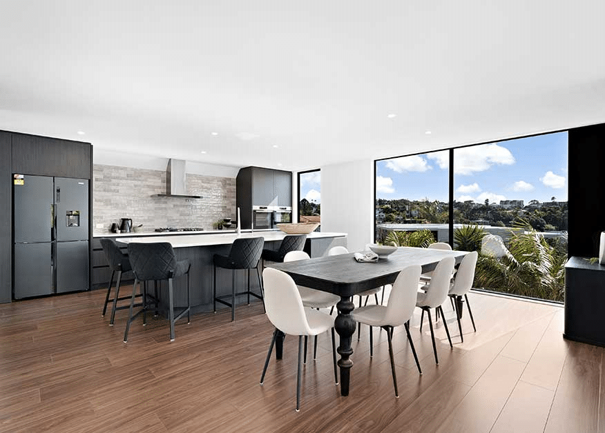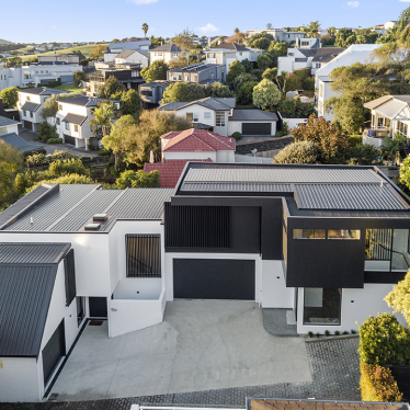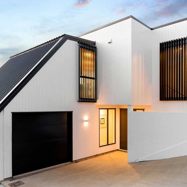 These two homes have been completely transformed, taking advantage of the need to rebuild from the slab up to remedy severe watertightness issues. The new design creates spaces filled with natural light and take advantage of incredible ocean views. High ceilings, open plan living and contemporary finishes draw the eye, but it’s the thoughtful design solutions that make this project truly unique.