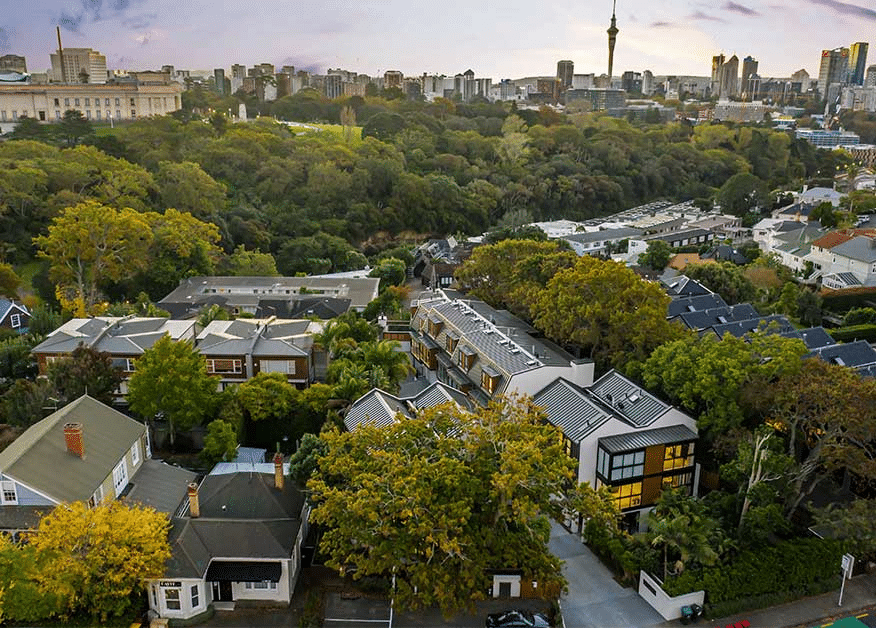 Located in Parnell, the brief was to create a development that takes advantage of the majestic mature oak trees and views of the historical landmarks – the Holy Trinity Cathedral and the Auckland Museum, while allowing the units to be light and airy. A contemporary French Provincial theme was incorporated.