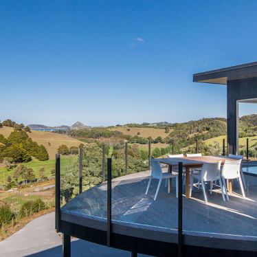The clients requested that we create a master plan for the property, a vision that could be brought to life in stages. The site consists of two key developments. At the road side, on the flat, the summer house and boat shed structures alongside the tennis court. Higher up, the new house has been designed with a master bedroom wing, a living wing and a bedroom wing, stretching across the site to maximise the views of the surrounding valley and ocean.