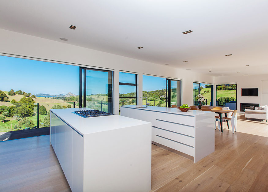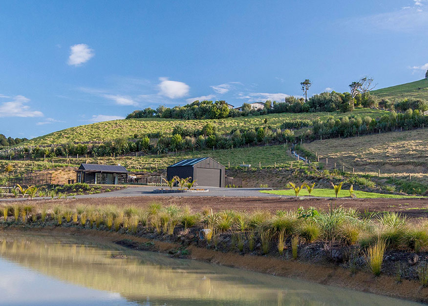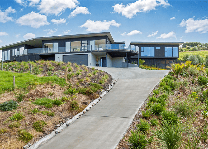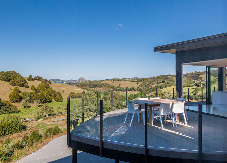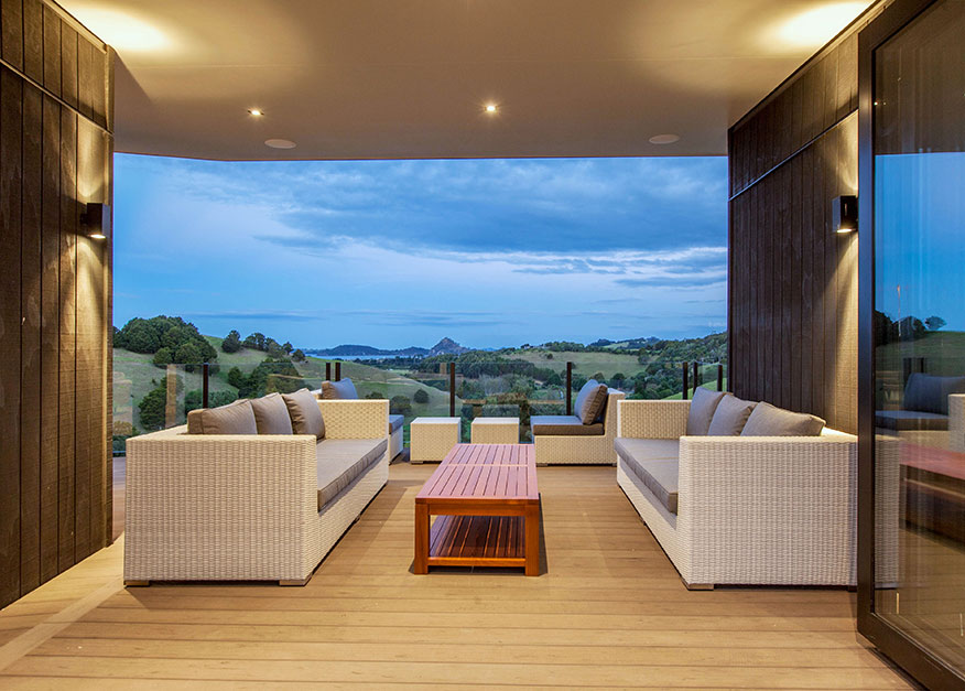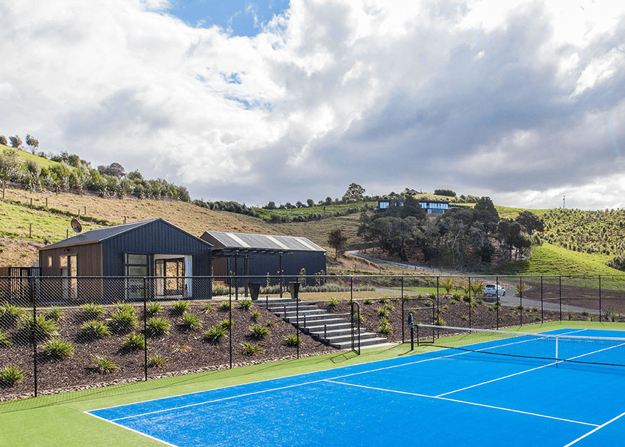 The clients requested that we create a master plan for the property, a vision that could be brought to life in stages. The site consists of two key developments. At the road side, on the flat, the summer house and boat shed structures alongside the tennis court. Higher up, the new house has been designed with a master bedroom wing, a living wing and a bedroom wing, stretching across the site to maximise the views of the surrounding valley and ocean.
