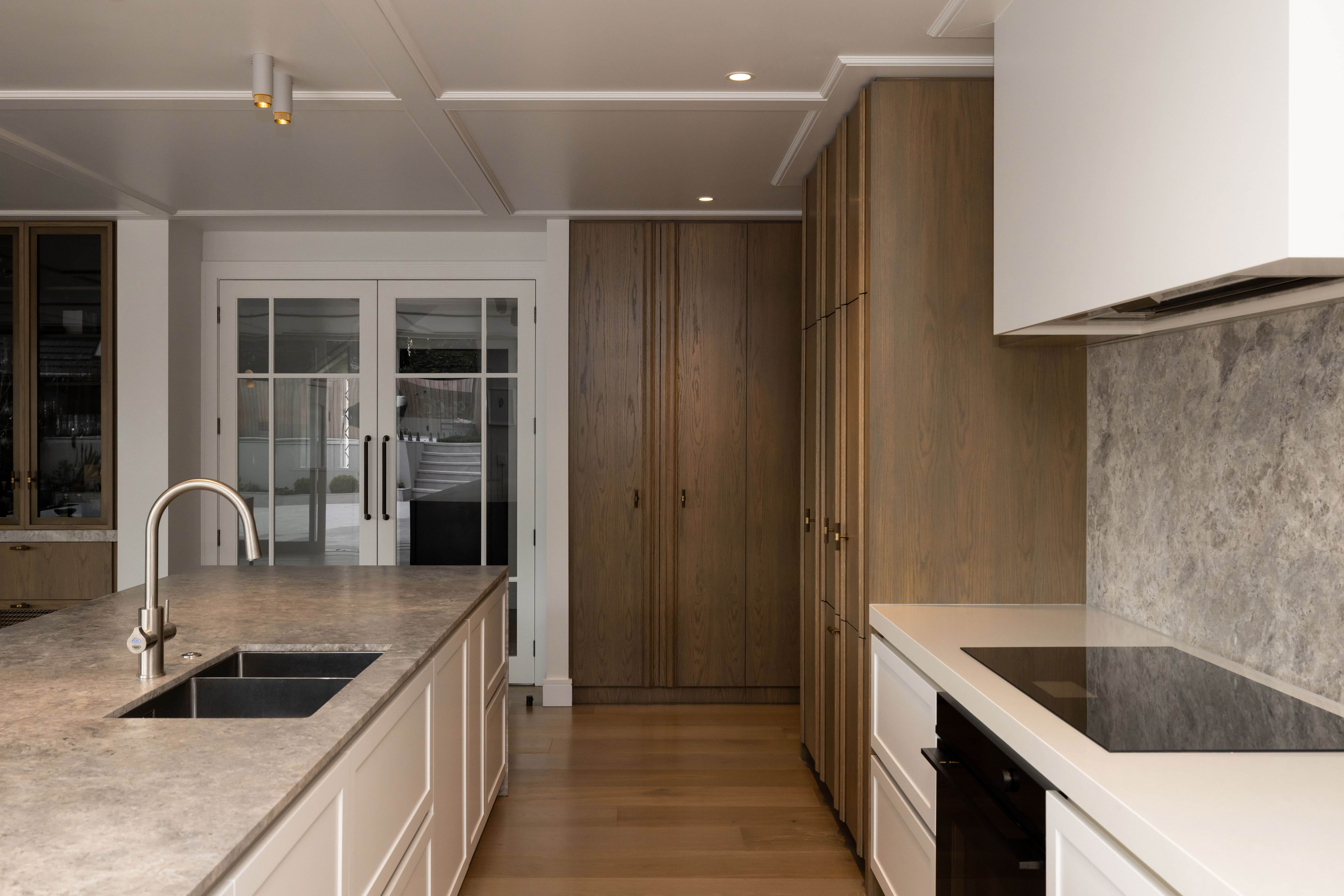 This renovation blends timeless design with functional elegance. Behind the restored Tudor façade lies a transformed interior featuring open, flowing spaces tailored to modern family living. The reconfigured layout opens up small, singular rooms into generous spaces that seamlessly blend inside and out. The challenge of uniting old and new, and creating effortless, functional spaces was solved with meticulous detailing and collaboration. The result is a luxurious home balancing comfort, practicality, and timeless architectural design.