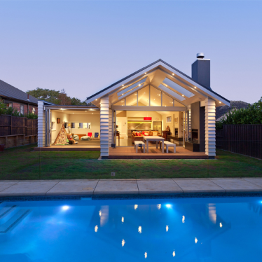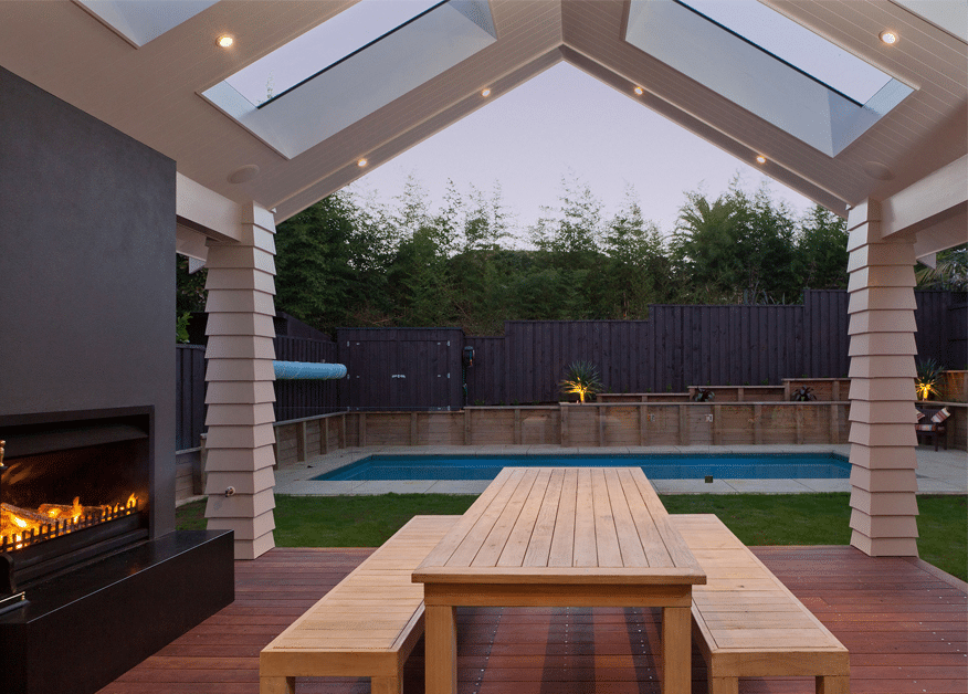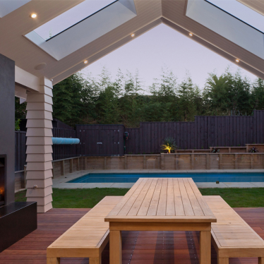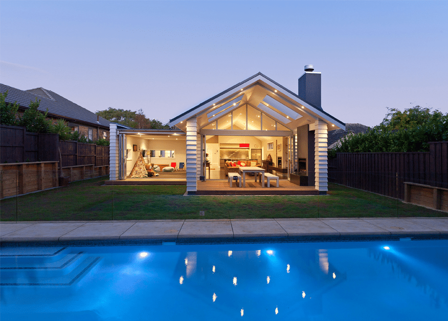 The brief was to provide a five-bedroom home, including a master bedroom. The internal space was to be divided into two living areas, with one being an open plan kitchen and dining area and the second a family room, which has the ability to be closed off from the open plan living area. A Loggia with outdoor fireplace has also been incorporated, with connection to the main living area, and a swimming pool located at the rear of the property.