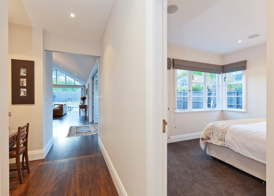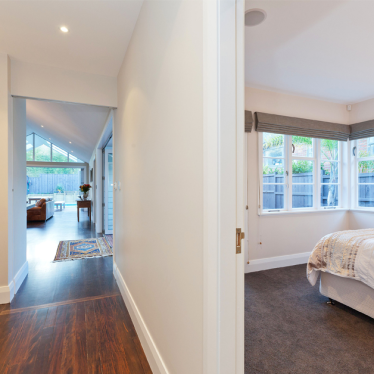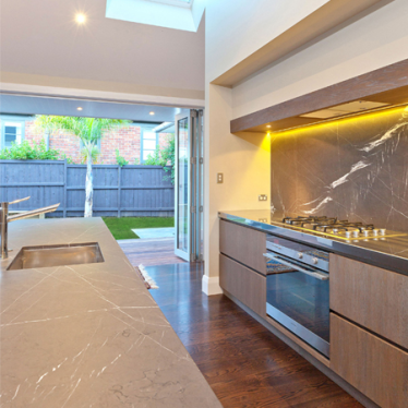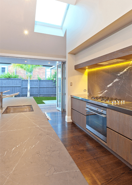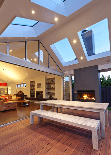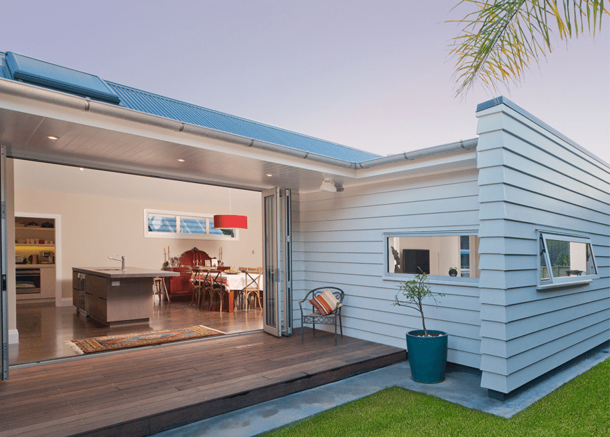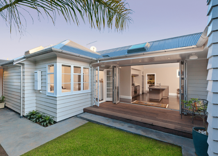 Timber weather boards have been continued to the exterior, matching the existing with timber overlay flooring and timber decking utilised to achieve a seamless transition between interior and exterior spaces.