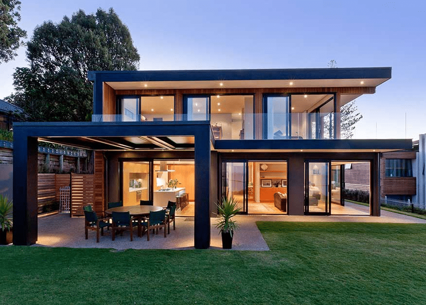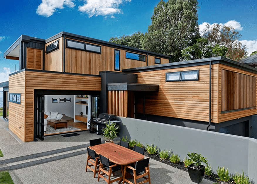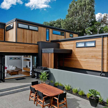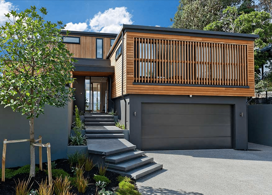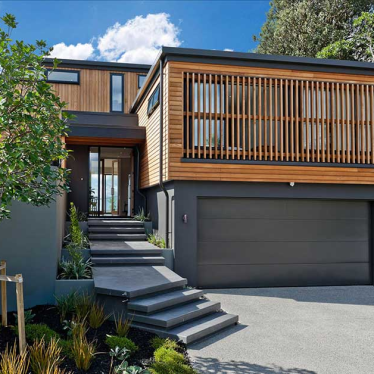 The box forms are further integrated with recesses, eyebrow roofs, battens and black joinery providing an interesting contrast between texture and form.