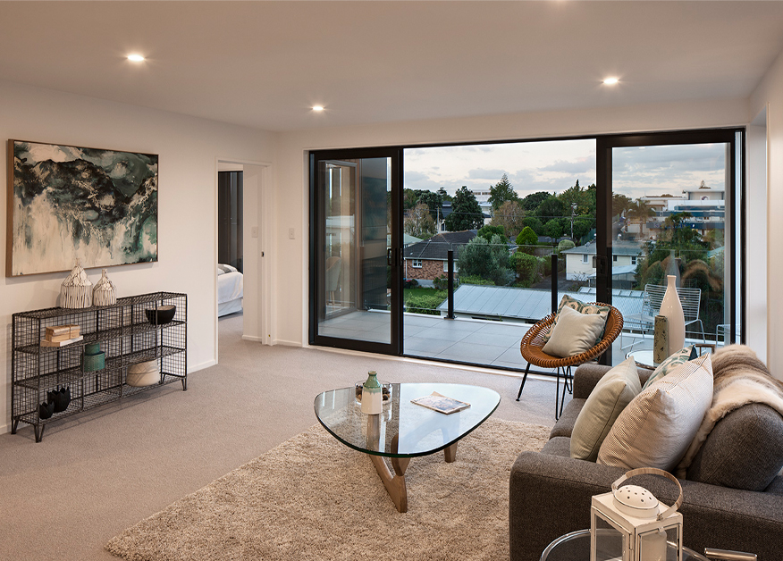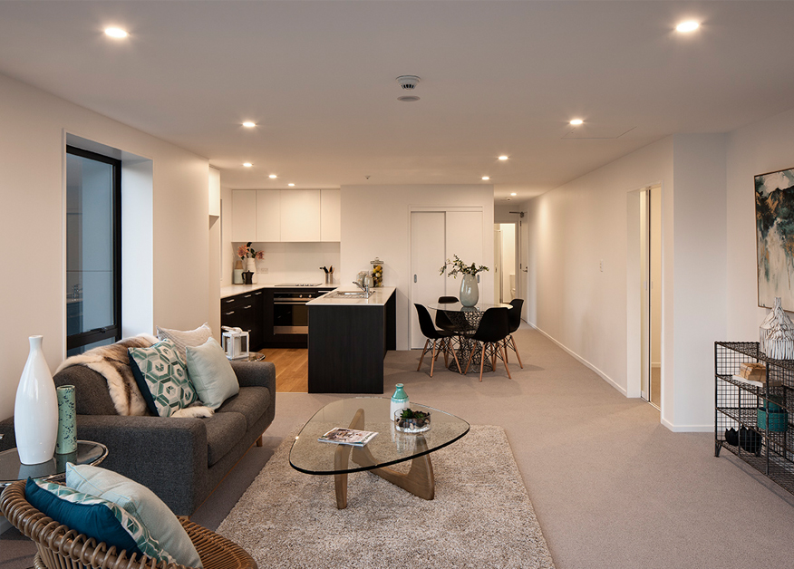 Aesthetically, adaptive re-use was followed as a point of difference from other apartment developments in Auckland City, and it became imperative that this part of the brief remained unchanged. Although it was more cost effective to build new, our sustainable practice and design considerations determined the lower two floors of structure could be retained, and it was possible to increase the scope to include 104 apartments including one and two-bedroom options, most of which have sizeable balconies. On this basis, two lower levels were formed within the concrete existing structure, comprising of car-parking and storage, flanked by new units.
