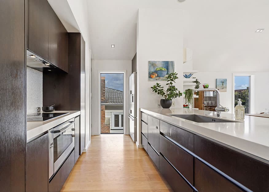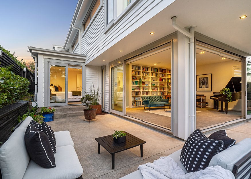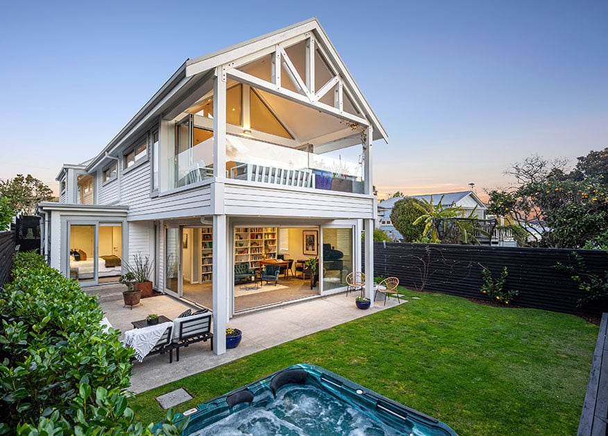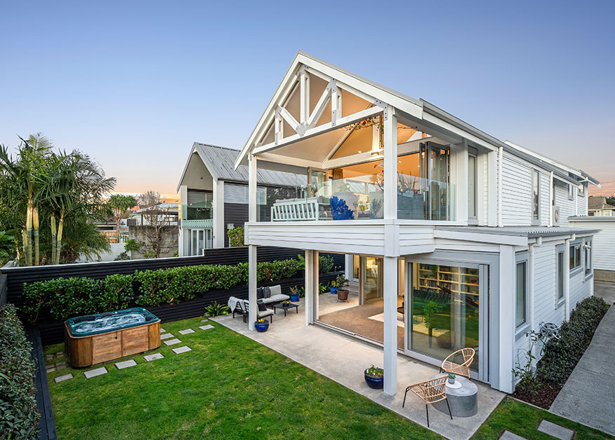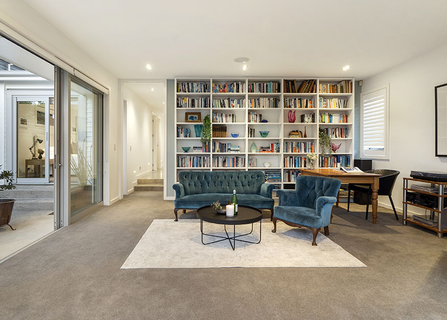 The owner’s brief involved designing a four bedroom home with two separate living areas in the built up inner suburb of Westmere. The family wanted to take advantage of the neighbouring park and sea views while maintaining privacy from their close adjoining neighbours.