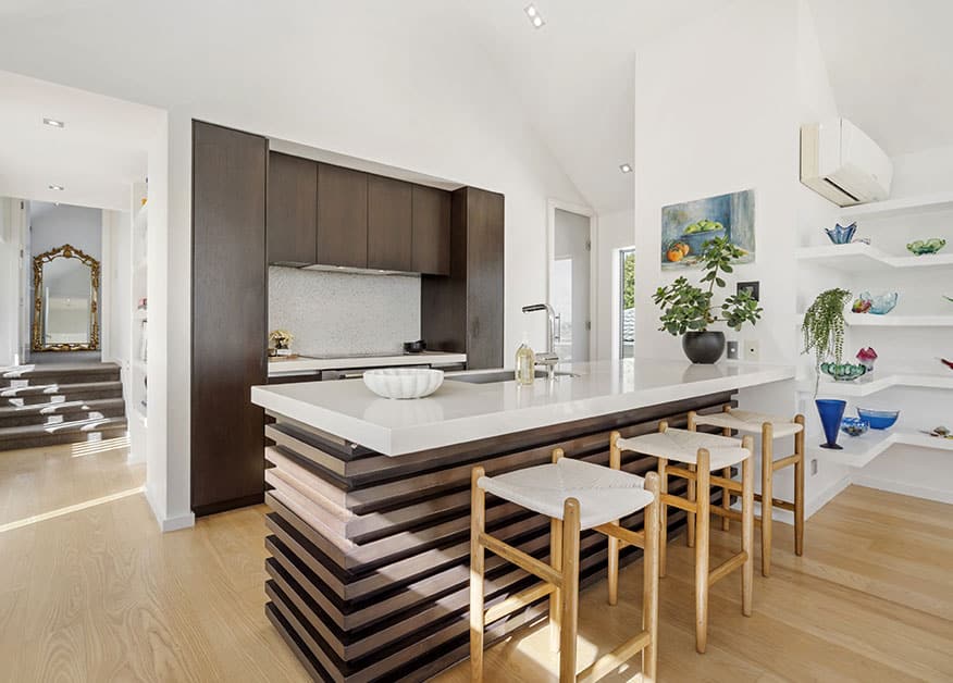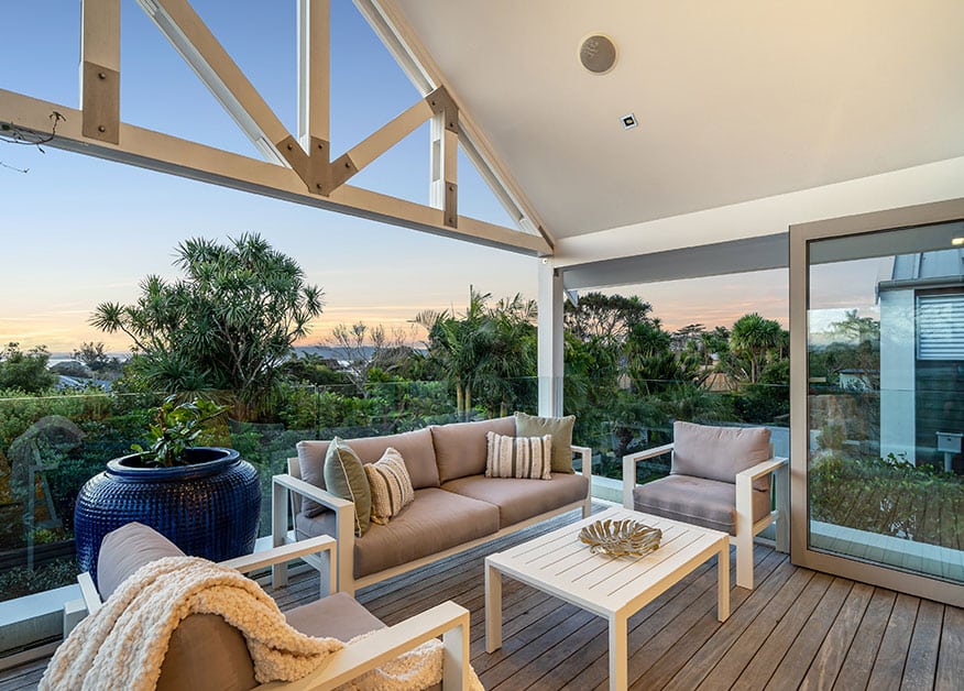 The home was to be based on a boat house theme with white on white raking ceilings being carried out to an external deck area.